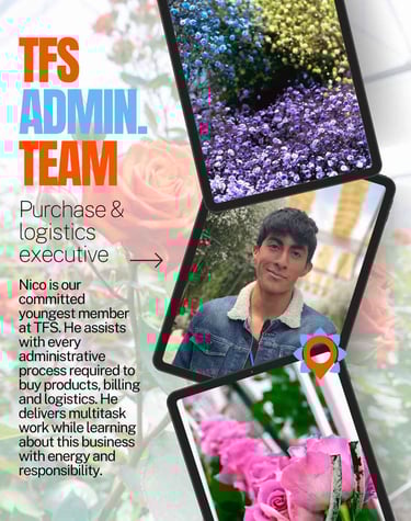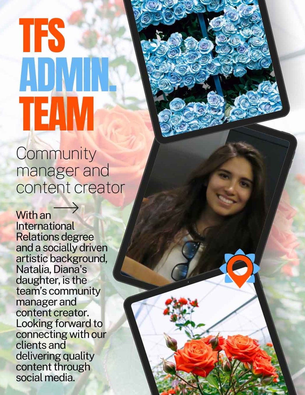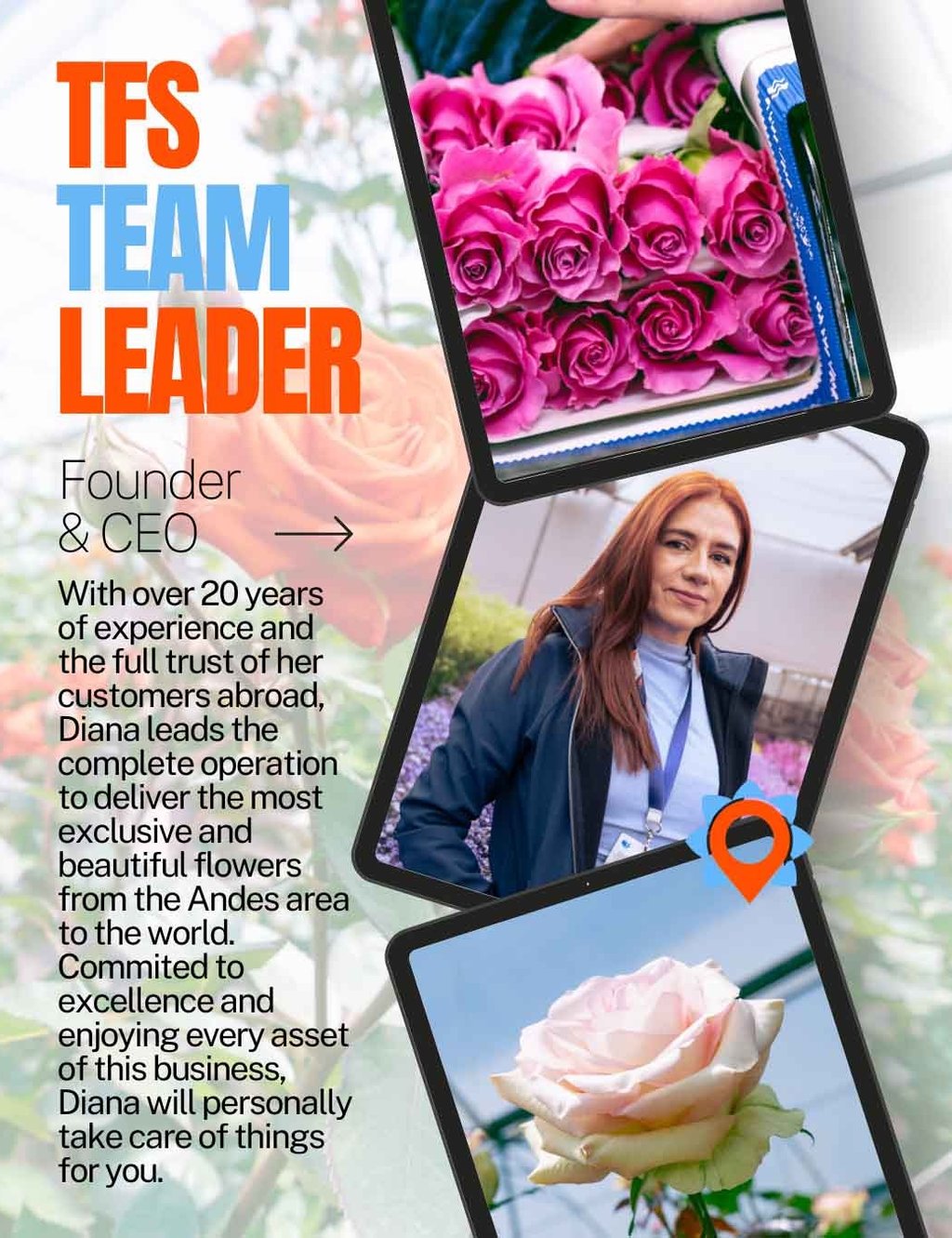 In 2022, after 30 years of working in every stage of the flower business — from farms to freight to global sales — Diana founded Tracking Flower Service. With experience leading the world’s largest floral group and the full trust of clients across Europe, she set out to build something of her own: a self-made operation strategy with global reach.